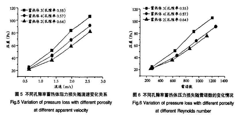 (2)蓄熱體阻力損失隨孔隙率增加而減小。在蓄熱體孔隙率—定時(shí),蓄熱體阻力損失隨雷諾數(shù)增加而。
